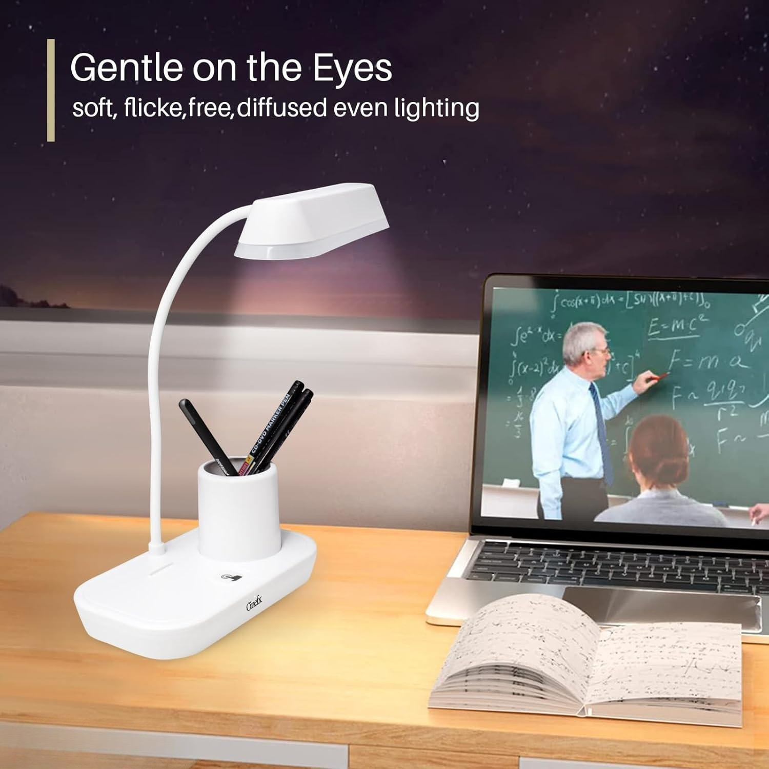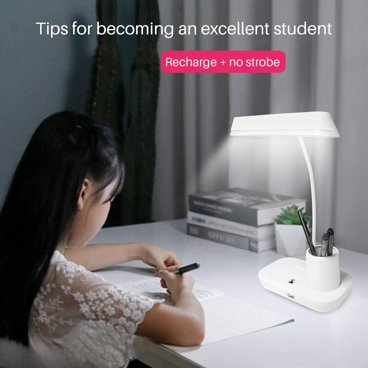 LED Table Lamp with Phone Pen Holder Touch Dimming Flexo Desk Lamp USB Rechargeable Eye Protection Reading Bedside Night Light